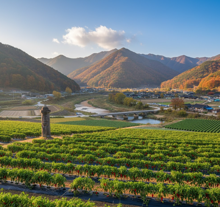 괴산을 대표하는 가장 유명한 특산물은 바로 괴산 고추입니다. 괴산 고추는 두꺼운 과육, 선명한 색깔, 그리고 깔끔하게 매운맛으로 전국적인 명성을 얻고 있습니다. 맑은 기후 조건과 비옥한 토양 덕분에 고추의 품질이 매우 뛰어나며, 매년 가을에는 괴산 고추 축제가 열려 지역 경제의 핵심 동력이 됩니다. 고추를 이용한 김치나 양념은 맛과 품질을 보장합니다.